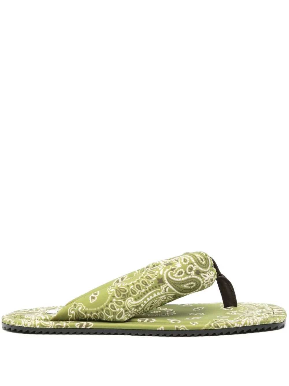Indie sandals Highlights - Light green - Bandana print - Thong strap - Square open toe - Flat rubber sole Made In Italy Composition Lining: Fabric 100% Outer: Fabric 100% Sole: Rubber 100%