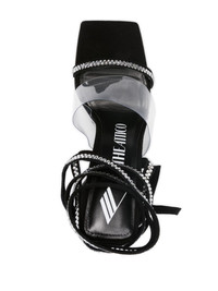 Isa 115mm embellished leather sandals Demonstrating The Attico’s penchant for statement footwear, these sandals are traced with dazzling rhinestone embellishments. They’re set atop a sculpted pyramidal heel. Highlights - Black/silver-tone - Calf leather - Rhinestone embellishment - Square toe - Wraparound style - Tie-fastening ankle strap - Branded insole - High block heel Made in Italy Composition Outer: Calf Leather 100%, Plastic 100% Lining: Calf Leather 100% Sole: Calf Leather 100% SIZE & FIT Measurement HEEL 4.72 in(12 cm) Sole height 0.39 in(1 cm)