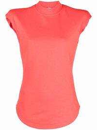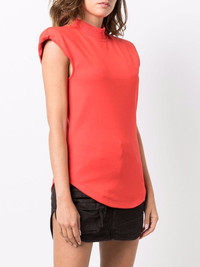 Jesse cotton top lobster orange cotton mock neck cap sleeves curved hem Made in Italy Composition Cotton 100% SIZE & FIT Model measurements Height 5 ft 9 in(1.74 m) Bust/Chest 32.28 in(82 cm) Hips 35.82 in(91 cm) Waist 24.01 in(61 cm) FittingInformation This piece fits true to size. We recommend you get your regular size Cut for a slim fit Made with a mid-weight fabric