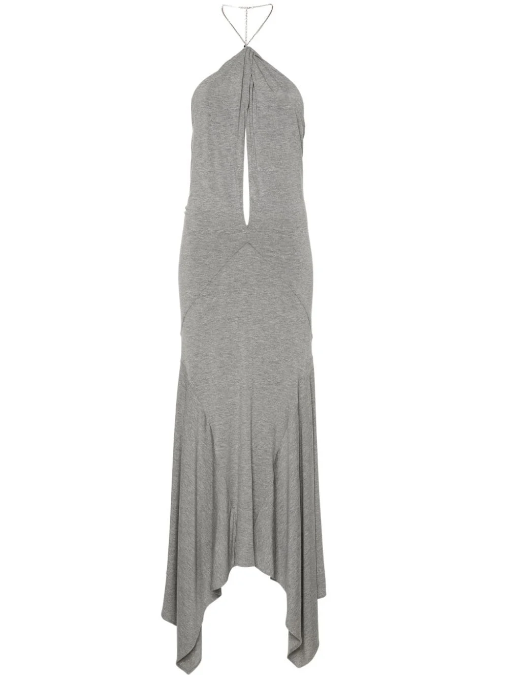 keyhole cut-out maxi dress Highlights - Medium grey - Stretch-jersey - Melange effect - Chain-link detailing - Mock neck - Keyhole neck - Open back - A-line skirt - Handkerchief hem - Ankle-length Made in Italy Composition Viscose 92%, Elastane 8% SIZE & FIT Model measurements Height 5 ft 10 in(1.77 m) Bust/Chest 32.28 in(82 cm) Hips 35.03 in(89 cm) Waist 25.19 in(64 cm) FittingInformation Designed for a loose fit at the chest and waist with a close fit at the hips Made from a midweight stretch fabric, this piece offers elasticity and flexibility when worn This piece fits true to size – take your usual size Measurement HIPS 34.01 in(86.4 cm) LENGTH 52 in(132.1 cm) WAIST 20 in(50.8 cm) BUST 25.98 in(66 cm)
