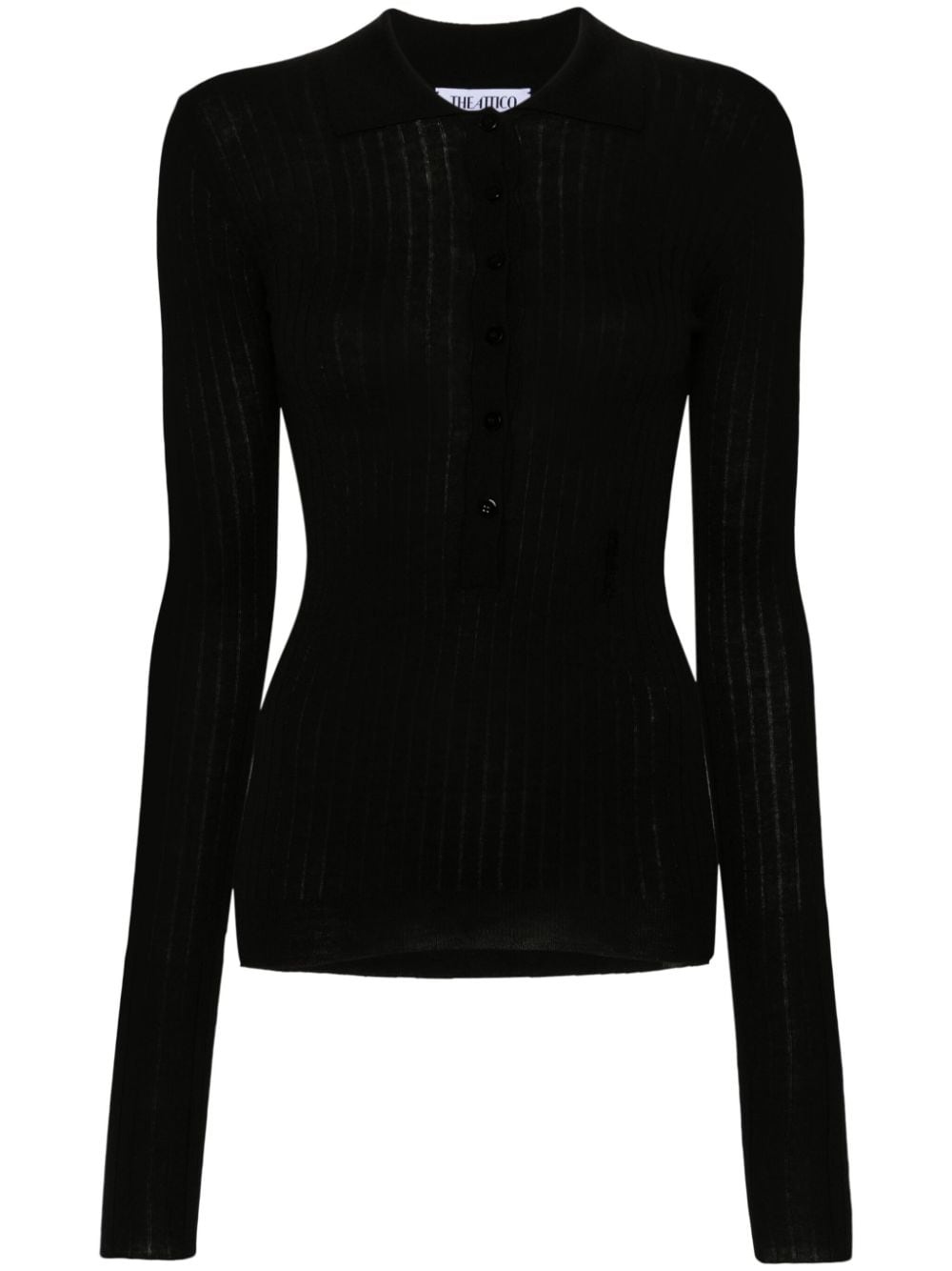 knitted sweater Highlights - Black - Cashmere - Ribbed knit - Flocked logo - Polo collar - Front button placket - Long sleeves - Straight hem Imported Composition Cashmere 100% SIZE & FIT Model measurements Height 5 ft 10 in(1.78 m) Bust/Chest 33.07 in(84 cm) Hips 36.61 in(93 cm) Waist 24.8 in(63 cm) FittingInformation Designed for a close fit throughout Made with a lightweight knit, this piece offers some stretch This piece fits true to size – take your usual size