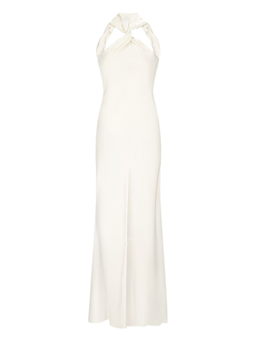 knot-detail maxi dress Highlights - Off-white - Halter neck - Twisted detail - Open back - Sleeveless Imported Composition Fabric 100% Washing instructions Read Manufacturer Guidelines