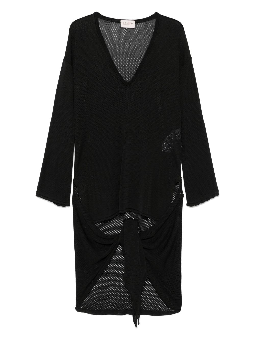knotted mini dress Highlights - Black - Unlined - Plunging v-neck - Long sleeves Imported Composition Viscose 100% SIZE & FIT Model measurements Height 5 ft 10 in(1.79 m) Bust/Chest 35.43 in(90 cm) Hips 35.03 in(89 cm) Waist 25.19 in(64 cm) FittingInformation Designed for a loose fit at the chest and waist with a close fit at the hips Made with a midweight knit, this piece offers some stretch