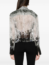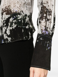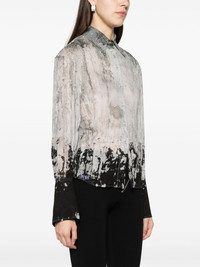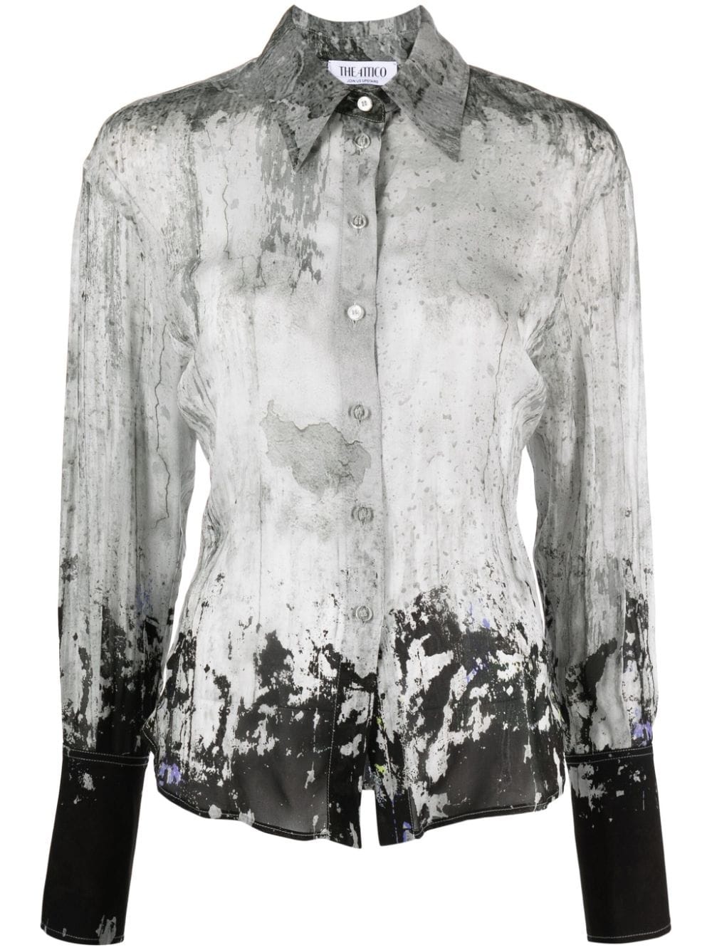 Lily abstract-print shirt Cut in Italy from semi-sheer fabric to a flowy silhouette that slightly cinches at the waist, the Lily blouse reflects the Attico's penchant for bold silhouettes and prints. It is emblazoned with a bold abstract motif throughout and fitted with flared cuffs. Highlights - Light grey/multicolour - Semi-sheer construction - Lightweight - Abstract pattern print - Straight-point collar - Front button fastening - Long sleeves - Buttoned cuffs - Long cuffs - Curved hem Made in Italy Composition Viscose 100% SIZE & FIT Model measurements Height 5 ft 11 in(1.8 m) Bust/Chest 31.49 in(80 cm) Hips 36.22 in(92 cm) Waist 25.59 in(65 cm) FittingInformation Designed for a slim fit that sits just away from the body offering a close yet comfortable fit The dart stitching adds structure and a closer fit in the torso of this piece Made from a lightweight non-stretch fabric This piece fits true to size – take your usual size Washing instructions Dry Clean Only