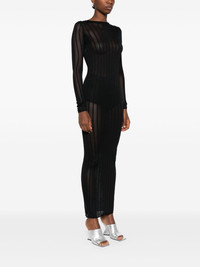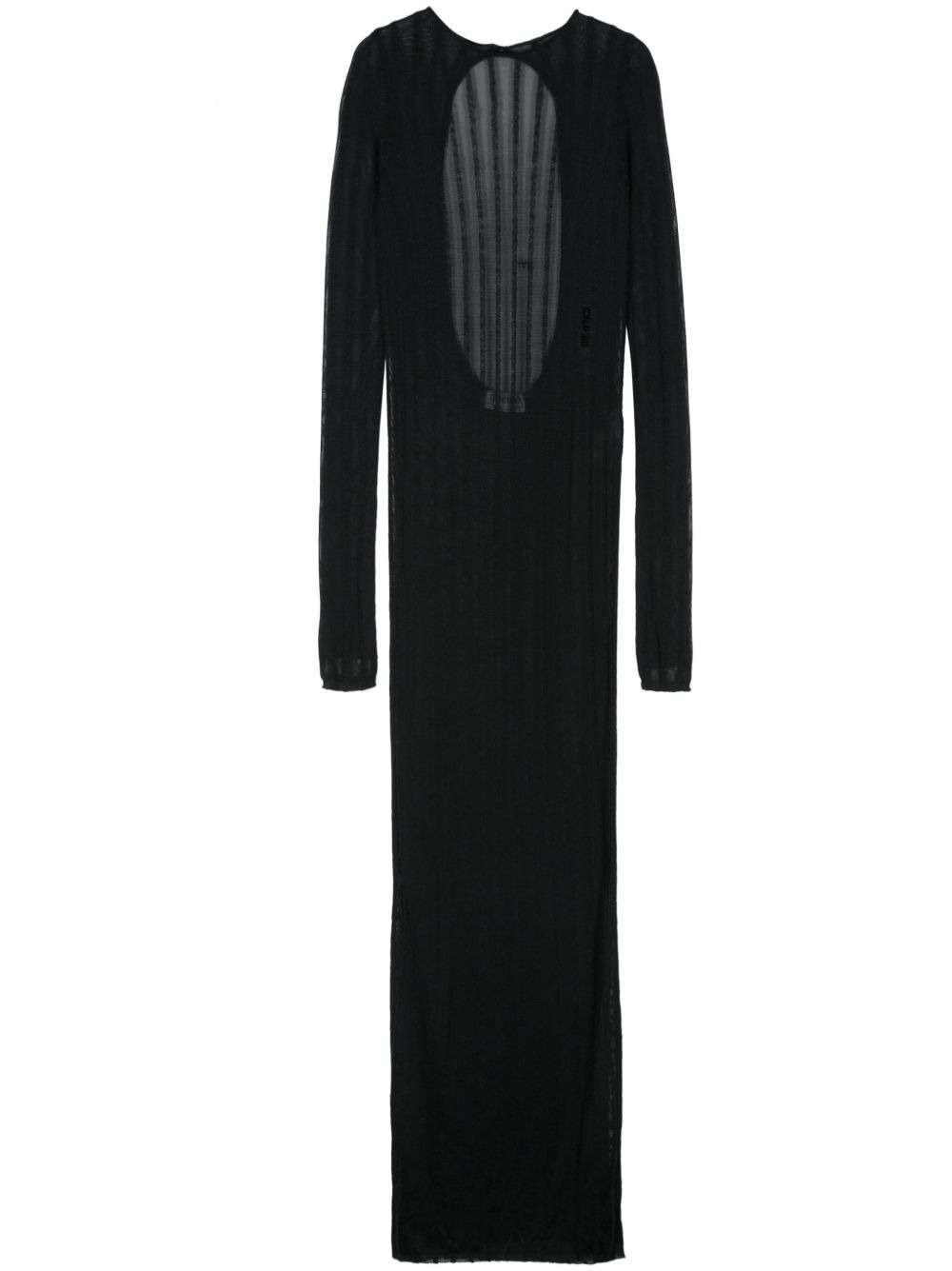 logo-embroidered maxi dress Highlights - Black - Ribbed knit - Single rear button fastening - Semi-sheer construction - Intarsia pinstripe effect - Round neck - Long sleeves - Embroidered logo to the front - Cut-out detailing - Straight hem - Floor-length Made in Italy Composition Viscose 75%, Alpaca 18%, Polyamide 7% SIZE & FIT Model measurements Height 5 ft 10 in(1.78 m) Bust/Chest 31.49 in(80 cm) Hips 37 in(94 cm) Waist 23.62 in(60 cm) FittingInformation Designed for a close fit throughout Made with a fine knit, this piece offers some stretch This piece fits true to size – take your usual size Measurement SLEEVE LENGTH 25.51 in(64.8 cm) HIPS 25 in(63.5 cm) LENGTH 59.01 in(149.9 cm) WAIST 22.99 in(58.4 cm) BUST 27.99 in(71.1 cm)