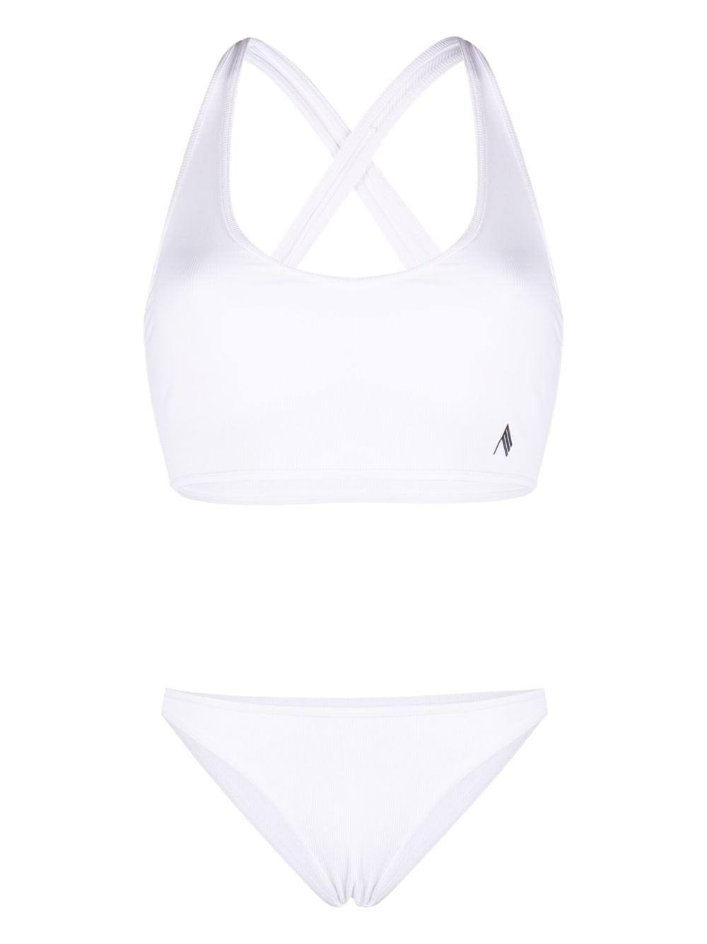 logo patch ribbed bikini Drawing inspiration from classic athleisure silhouettes, this white bikini from The Attico boasts a scoop neckline and rear criss-cross straps whilst a contrasting black logo motif infuses its understated look with a recognisable appeal. Highlights - White - Ribbed detailing - Top: - Scoop neck - Rear criss-cross straps - Bottoms: - Brief-style bottoms - Be mindful to try on swimwear over your own garments. Made in Italy Composition Outer: Polyamide 88%, Spandex/Elastane 12% Lining: Polyamide 84%, Spandex/Elastane 16% Washing instructions Machine Wash