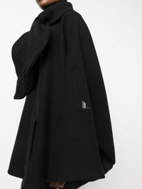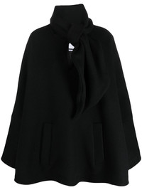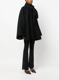 logo-plaque cape Crafted from a soft virgin wool blend, this cape from The Attico features exaggerated sleeves and the signature logo plaque. Highlights - Black - Virgin wool blend - Silver-tone logo plaque - Gathered tie neck - Long wide sleeves Made in Italy Composition Lining: Cupro 100% Outer: Virgin Wool 75%, Polyamide 25% SIZE & FIT Model measurements Height 5 ft 11 in(1.8 m) Bust/Chest 31.49 in(80 cm) Hips 36.61 in(93 cm) Waist 24.4 in(62 cm) FittingInformation Designed for an oversized fit, offering additional room throughout Made from a midweight non-stretch fabric This piece fits true to size – take your usual size Measurement SLEEVE LENGTH 9.48 in(24.1 cm) LENGTH 30 in(76.2 cm) WAIST 87.99 in(223.5 cm) BUST 80.98 in(205.7 cm)