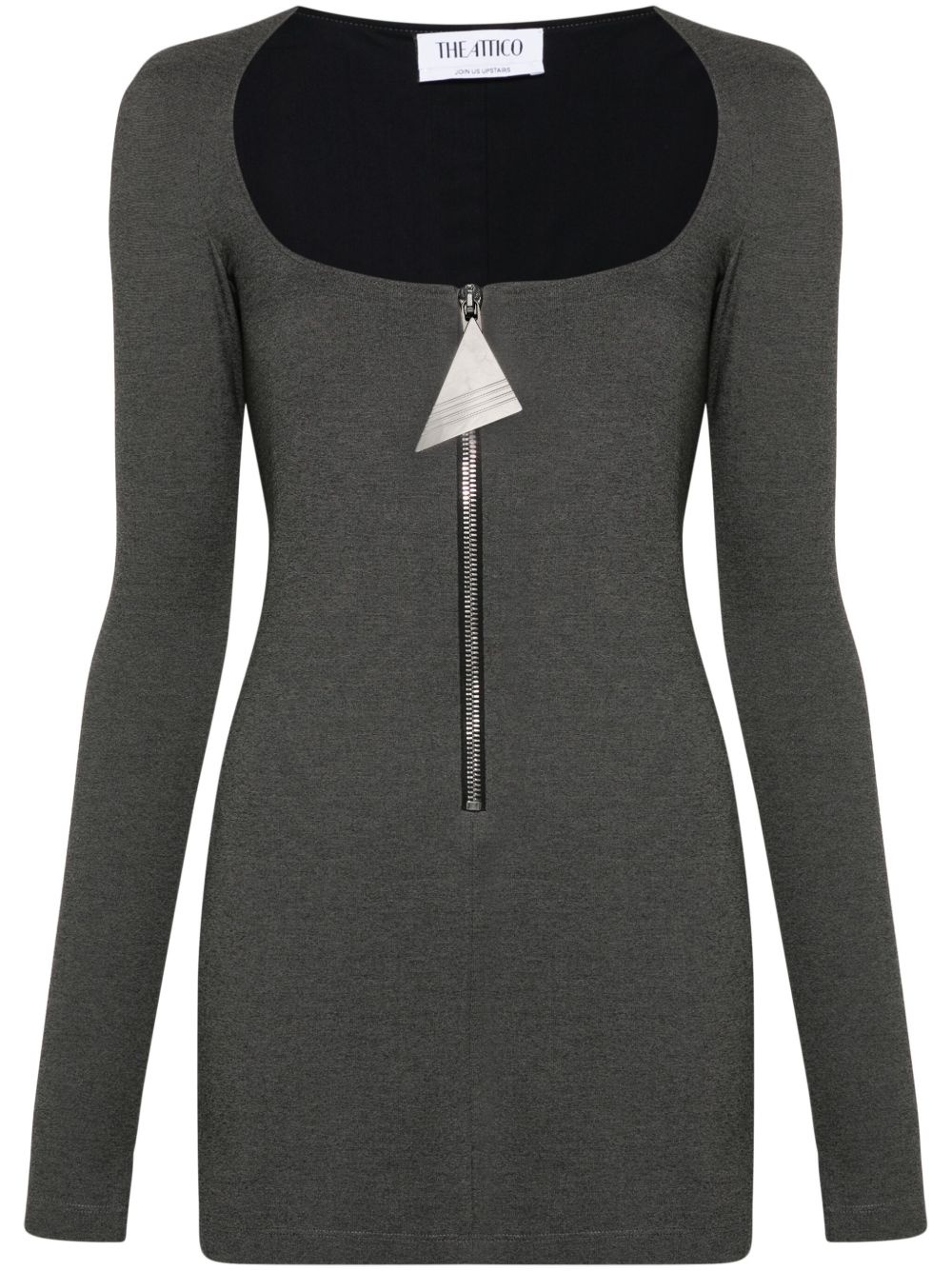 melange-effect mini dress Highlights - Medium grey - Stretch-design - Melange effect - Scoop neck - Long raglan sleeves - Straight hem - Thigh-length - Branded zip puller - Silver-tone hardware - Front zip fastening Made in Italy Composition Outer: Polyester 100%, Rayon 68%, Polyamide 27%, Elastane 5% Lining: Polyamide 73%, Elastane 27% SIZE & FIT Model measurements Height 5 ft 9 in(1.75 m) Bust/Chest 31.88 in(81 cm) Hips 34.64 in(88 cm) Waist 24.01 in(61 cm) FittingInformation Designed for a close fit throughout Slightly short in length; consider your own measurements Made from a midweight stretch fabric, this piece offers elasticity and flexibility when worn This piece fits true to size – take your usual size Measurement HIPS 30 in(76.2 cm) LENGTH 29.48 in(74.9 cm) WAIST 22 in(55.9 cm) BUST 25.98 in(66 cm)