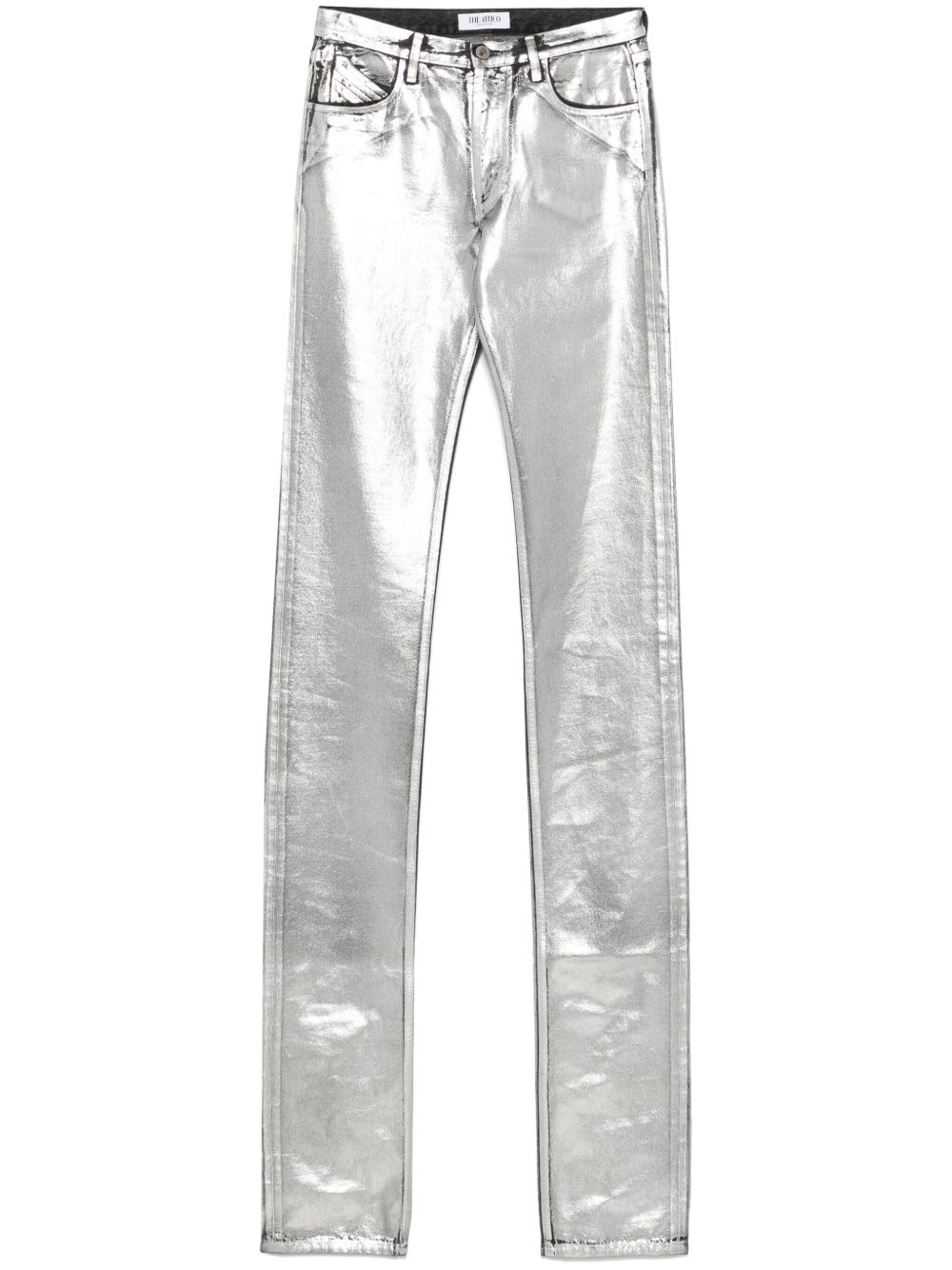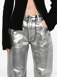 metallic-finish jeans Highlights - Silver-tone - Button fly fastening - Belt loops - Classic five pockets - Logo patch to the rear Made in Italy Composition Lining: Polyester 65%, Cotton 35% Outer: Cotton 100% SIZE & FIT Model measurements Height 5 ft 10 in(1.78 m) Bust/Chest 33.46 in(85 cm) Hips 36.22 in(92 cm) Waist 23.22 in(59 cm) Measurement FRONT RISE 11.49 in(29.2 cm) INSIDE LEG 53.5 in(135.9 cm) WAIST 32 in(81.3 cm) FittingInformation Designed for a tapered fit, these jeans allow a close fit at the waist and a loose unrestricted fit over the leg with a closer fit towards the ankle Particularly long in length; consider your own measurements Sturdy and hard-wearing, this denim piece offers no stretch
