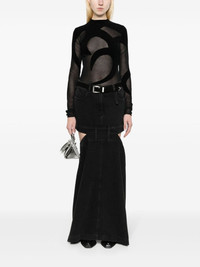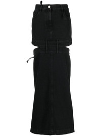 midi denim skirt Showing the brand's bold style, this denim skirt from The Attico features a black design enhanced by a cut-out detail in the middle. Crafted from cotton, it has a relaxed cut that goes until the floor. Highlights - Black - Cotton - Embroidered logo to the rear - Cut-out detailing - Mid-rise - Belt loops - Front button and zip fastening - Classic five pockets - Floor-length Made in Italy Composition Lining: Polyester 65%, Cotton 35% Outer: Cotton 100% SIZE & FIT Model measurements Height 5 ft 10 in(1.78 m) Bust/Chest 30.7 in(78 cm) Hips 36.61 in(93 cm) Waist 24.8 in(63 cm) Measurement HIPS 37 in(94 cm) LENGTH 41.73 in(106 cm) WAIST 30.7 in(78 cm) FittingInformation This maxi-length skirt is intended to be worn low on the hips Sturdy and hard-wearing, this denim piece offers no stretch This piece fits true to size – take your usual size Washing instructions Hand Wash