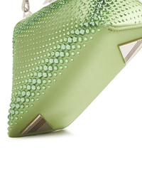 Midnight crystal-embellished clutch bag The Attico's Midnight clutch bag is delivered in light green. Sculpted to a triangle silhouette, it's adorned with crystal embellishments. A detachable shoulder strap allows for custom styling. Highlights - Light green - Calf leather - Crystal embellishment - Silver-tone logo plaque - Clasp fastening - Detachable shoulder strap - Internal card slot Made in Italy Composition Outer: Calf Leather 100%, Acrylonitrile Butadiene Styrene (ABS) 100% SIZE & FIT Measurement DEPTH 3.54 in(9 cm) HEIGHT 5.11 in(13 cm) WIDTH 7.08 in(18 cm)