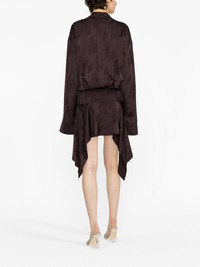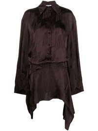 Mischa logo-jacquard asymmetric shirtdress This satin shirtdress from The Attico stays true to the brand's statement aesthetic. Imagined in a chocolate-brown hue, the asymmetric construction plays host to a subtle jacquard pattern that spotlights the brand’s signature 'A' monogram. Highlights - Chocolate brown - Satin finish - Jacquard logo motif - Classic collar - Front button fastening - Long wide sleeves - Asymmetric hem Made in Italy Composition Viscose 100% SIZE & FIT Model measurements Height 5 ft 10 in(1.78 m) Bust/Chest 30.7 in(78 cm) Hips 34.64 in(88 cm) Waist 23.22 in(59 cm) FittingInformation Designed for a loose fit at the chest and waist with a close fit at the hips Made from a midweight non-stretch fabric This piece fits true to size – take your usual size Washing instructions Dry Clean Only