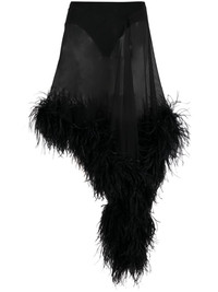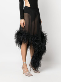 Miya feather-trimmed asymmetric skirt Presented in a semi-sheer construction, the Miya skirt showcases The Attico's penchant for bold looks. Its asymmetric silhouette falls to knee-length, with a feather trim adding an audacious finish. Highlights - Black - Semi-sheer construction - Elasticated waistband - Feather-trim detailing - Asymmetric hem Made in Italy Composition Ostrich Feather 100%, Acetate 75%, Polyamide 20%, Spandex/Elastane 5% SIZE & FIT Model measurements Height 5 ft 11 in(1.8 m) Bust/Chest 33.07 in(84 cm) Hips 37.4 in(95 cm) Waist 25.19 in(64 cm) FittingInformation Designed with an asymmetric hem, this skirt is intended to be worn just below the waist Made from a lightweight stretch fabric, this piece offers elasticity and flexibility when worn This piece fits true to size – take your usual size Washing instructions Specialist Cleaning