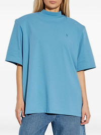 mock-neck embroidered-logo T-shirt Highlights - Light-blue - Mock neck - Short sleeves - Embroidered logo - Cotton Imported Composition Cotton 100% Washing instructions Read Manufacturer Guidelines