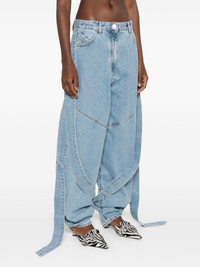 multi-string jeans Highlights - Light blue - Front button and zip fastening - Classic five pockets - Belt loops - Logo patch to the rear Made in Italy Composition Lining: Polyester 65%, Cotton 35% Outer: Cotton 100% SIZE & FIT Model measurements Height 5 ft 10 in(1.78 m) Bust/Chest 31.49 in(80 cm) Hips 37 in(94 cm) Waist 23.62 in(60 cm) FittingInformation Designed for a tapered fit, these jeans allow a close fit at the waist and a loose unrestricted fit over the leg with a closer fit towards the ankle Sturdy and hard-wearing, this denim piece offers no stretch Washing instructions Machine Wash