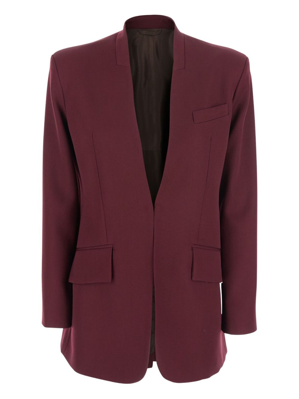 padded-shoulder gabardine blazer Highlights - Burgundy - Wool gabardine - Padded shoulders - Open front - Welt pockets - Long sleeves Imported Composition Wool 100% Washing instructions Read Manufacturer Guidelines