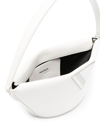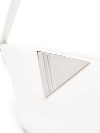 Piccola leather shoulder bag Held by a single shoulder strap, this Piccola shoulder bag is an instantly recognisable The Attico accessory thanks to the signature triangle that adorns the front – a brand's signature. Highlights - White - Calf leather - Logo plaque - Debossed logo to the rear - Single shoulder strap - Magnetic fastening - Internal slip pocket - Silver-tone hardware Made in Italy Composition Outer: Calf Leather 100% Lining: Polyurethane 100%, Cotton 70%, Polyester 30% SIZE & FIT Model measurements Height 5 ft 9 in(1.76 m) Bust/Chest 31.88 in(81 cm) Hips 35.43 in(90 cm) Waist 24.8 in(63 cm) Measurement DEPTH 3.93 in(10 cm) HEIGHT 3.93 in(10 cm) STRAP 5.9 in(15 cm) WIDTH 5.9 in(15 cm)