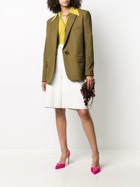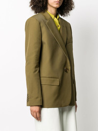 plain single breasted blazer Highlights - Military green - Notched lapels - Front button fastening - Long sleeves - Slit pocket at the chest - Two front flap pockets - Central rear vent - Full lining Made in Italy Composition Outer: Polyester 100% Lining: Viscose 100% SIZE & FIT Model measurements Height 5 ft 10 in(1.79 m) Bust/Chest 31.88 in(81 cm) Hips 35.43 in(90 cm) Waist 23.62 in(60 cm) Measurement SLEEVE LENGTH 24.4 in(62 cm) LENGTH 28.74 in(73 cm) BUST 40.15 in(102 cm) FittingInformation This piece fits true to size. We recommend you get your regular size Cut for a loose fit Made with a mid-weight non-stretch fabric Washing instructions Dry Clean Only