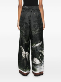 printed trousers Highlights - Anthracite grey - Button fly fastening - Elasticated drawstring waistband - Two side slit pockets - Two rear welt pockets Made in Italy Composition Silk 100% SIZE & FIT Model measurements Height 5 ft 9 in(1.76 m) Bust/Chest 31.1 in(79 cm) Hips 36.61 in(93 cm) Waist 24.8 in(63 cm) FittingInformation Designed with a wide-leg cut, these trousers allow for a close fit at the waist and offer a loose and roomy fit over the leg The elasticated waist allows for a comfortable fit Made from a midweight non-stretch fabric