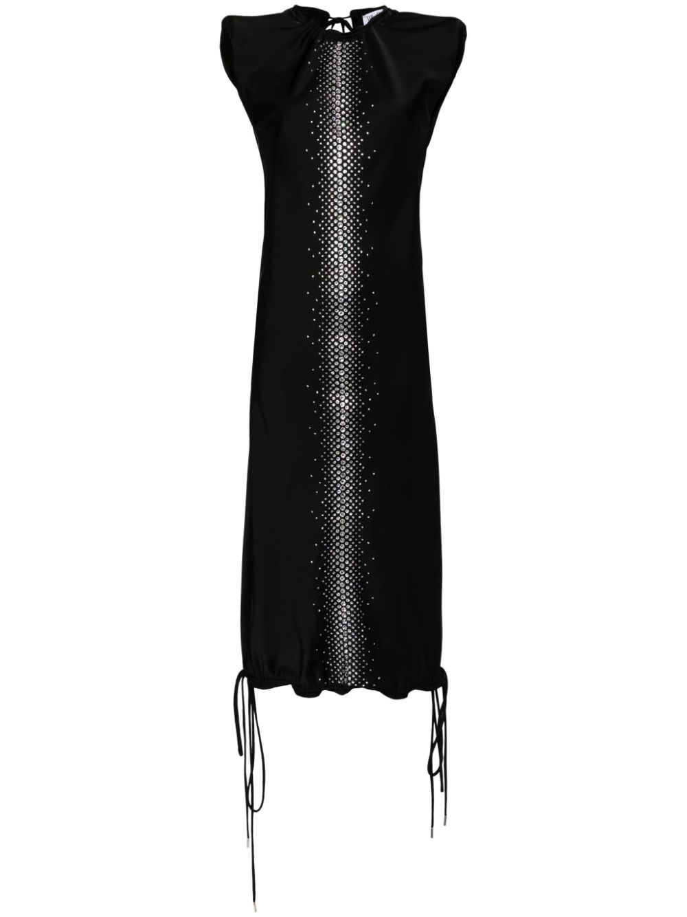rhinestone-embellished midi dress The Attico's SS24 collection is a 'maximalist celebration of individuality'. A case in point, this dress is decorated with rhinestones at the front for a sparkling note against the black background. Highlights - Black - Rhinestone embellishment - Gathered neckline - Rear tie fastening - Sleeveless - Open back - Drawstring hem - Mid-length Made in Italy Composition Polyester 100% SIZE & FIT Model measurements Height 5 ft 11 in(1.8 m) Bust/Chest 31.1 in(79 cm) Hips 36.22 in(92 cm) Waist 25.98 in(66 cm) FittingInformation Designed for a slim fit that sits just away from the body offering a close yet comfortable fit The internal shoulder pads offer a structured shape Made from a midweight non-stretch fabric This piece fits true to size – take your usual size