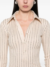 rhinestone-embellished polo shirt Highlights - Light beige - Front button placket - Long sleeves Imported Composition Cotton 100% SIZE & FIT Model measurements Height 5 ft 9 in(1.76 m) Bust/Chest 32.28 in(82 cm) Hips 35.43 in(90 cm) Waist 25.19 in(64 cm) FittingInformation Designed for a slim fit that sits just away from the body offering a close yet comfortable fit Made from a midweight non-stretch fabric