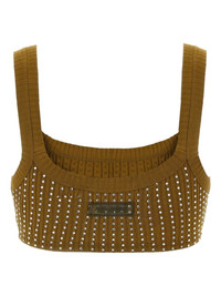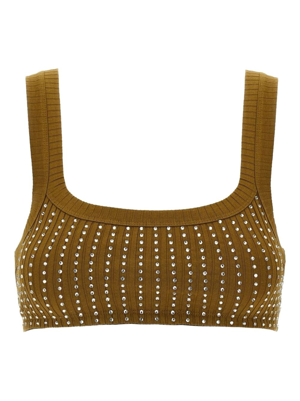 rhinestone-embellished ribbed top Highlights - Olive brown - Cotton - Ribbed knit - Rhinestone embellishments - Square neckline Imported Composition Cotton 100% Washing instructions Read Manufacturer Guidelines