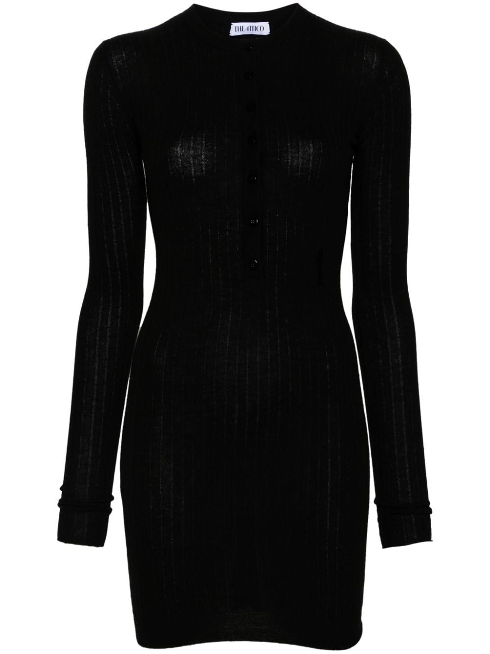 ribbed-knit mini dress Highlights - Black - Cashmere - Ribbed knit - Ribbed trim - Flocked logo - Crew neck - Front button placket - Long sleeves - Fitted waistline - Straight hem - Above-knee length Imported Composition Cashmere 100% SIZE & FIT Model measurements Height 5 ft 10 in(1.77 m) Bust/Chest 32.28 in(82 cm) Hips 35.03 in(89 cm) Waist 25.19 in(64 cm) FittingInformation Designed for a close fit throughout Made with a lightweight knit, this piece offers some stretch This piece fits true to size – take your usual size