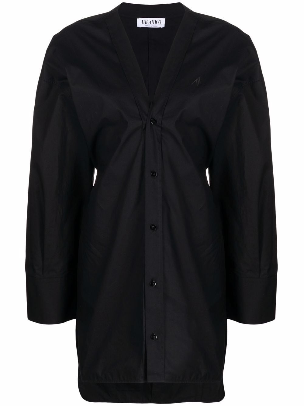 ruched-detail V-neck dress black cotton ruched detailing V-neck long sleeves straight hem fitted waistline Made in Italy Composition Cotton 100% SIZE & FIT Model measurements Height 5 ft 9 in(1.76 m) Bust/Chest 31.1 in(79 cm) Hips 35.43 in(90 cm) Waist 22.83 in(58 cm) FittingInformation This piece fits true to size. We recommend you get your regular size Designed for a loose fit with a close fit at the waist Made with a mid-weight non-stretch fabric Washing instructions Machine Wash