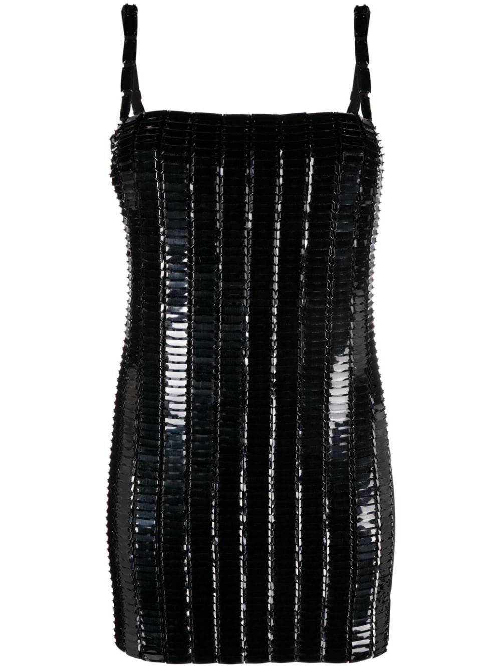 Rue embellished mini dress Highlights - Black - Sequin bodycon design - Low back - Square neck - Concealed rear fastening - Thin shoulder straps - Thigh-length Made in Italy Composition Outer: PVC 80%, Rayon 68%, Polyamide 27%, glass 20%, Elastane 5% Lining: Polyester 95%, Elastane 5% SIZE & FIT Model measurements Height 5 ft 10 in(1.77 m) Bust/Chest 27.95 in(71 cm) Hips 33.85 in(86 cm) Waist 23.22 in(59 cm) FittingInformation Designed for a close fit throughout Slightly short in length; consider your own measurements Made from a midweight non-stretch fabric This piece fits true to size – take your usual size