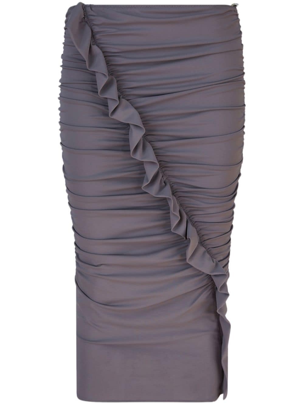 ruffled skirt Highlights - Grey - Asymmetric design - Bodycon design - Ruffle hem - Knee-length Imported Composition Fabric 100%