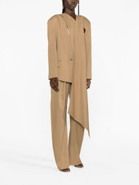 scarf-embellished single-breasted blazer The Attico’s blazer is a bold take on classic suiting. It’s tailored to a single-breasted silhouette punctuated by draped scarf detailing that falls fluidly at the front and back. Highlights - Camel brown - Virgin wool blend - Scarf detailing - Draped design - Classic lapels - Front button fastening - Long sleeves - Straight hem Made in Italy Composition Lining: Cupro 100% Outer: Virgin Wool 98%, Spandex/Elastane 2% SIZE & FIT Model measurements Height 5 ft 10 in(1.79 m) Bust/Chest 31.1 in(79 cm) Hips 35.03 in(89 cm) Waist 24.01 in(61 cm) FittingInformation Designed for an oversized fit, offering additional room throughout The internal shoulder pads offer a structured shape This piece fits true to size – take your usual size