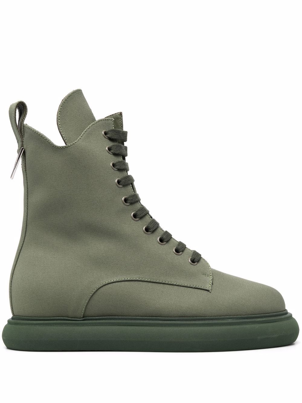Selene platform-sole mid-calf boots Showcasing the bold aesthetic that forms part of The Attico's personality, these boots are given a modern feel thanks to their eye-catching flatform sole. The more classic lace-up upper reflects the calmer aspect of the brand. Made in Italy Composition Lining: Leather 100% Sole: Rubber 100% Outer: Fabric 100% SIZE & FIT Measurement HEEL 1.37 in(3.5 cm) Sole height 1.37 in(3.5 cm) HEIGHT 7.08 in(18 cm)