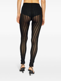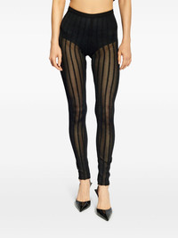 semi-sheer striped leggings Highlights - Black - Wool blend - Stretch-design - Semi-sheer construction - Stripe detailing Made in Italy Composition Viscose 75%, Alpaca Wool 18%, Polyamide 7% SIZE & FIT Measurement INSIDE LEG 34.48 in(87.6 cm) BACK RISE 11.49 in(29.2 cm) HIPS 25 in(63.5 cm) Hem Width 7 in(17.8 cm) WAIST 24.01 in(61 cm)