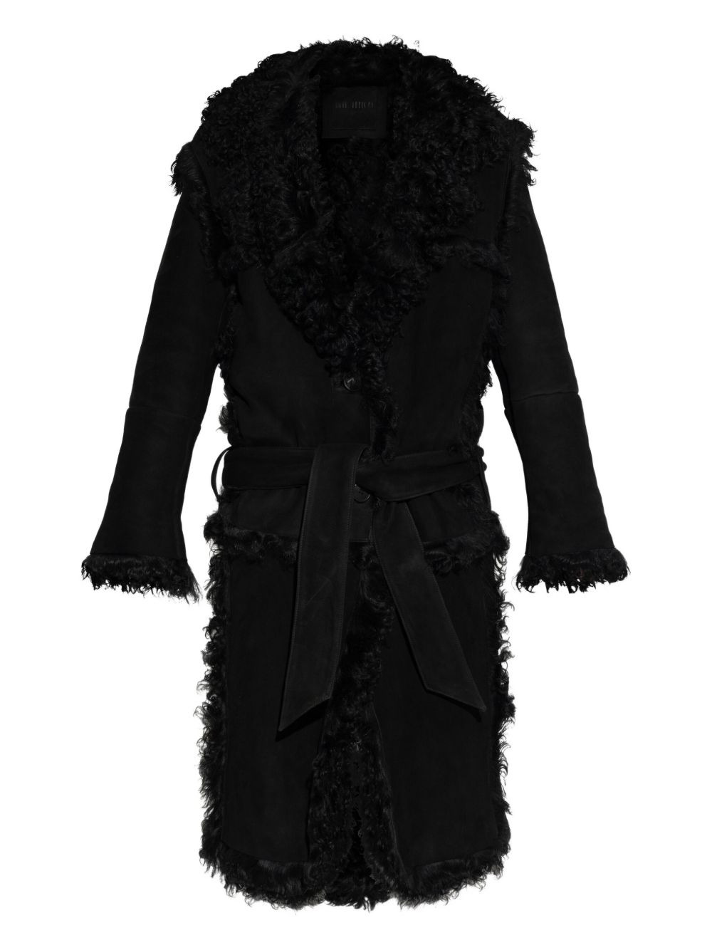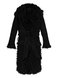 shearling coat Highlights - Black - Suede body - Shearling trim - Belted waist - Button fastening Imported Composition Lamb Skin 100%, Lamb Fur 100% Washing instructions Read Manufacturer Guidelines