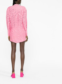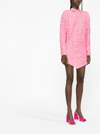 Silvye zebra-patterned shirt dress Rendered in The Attico's 'Geranium' pink colourway, this Silvye showcases the brand's colourful take on the classic shirting silhouette. The style is further elevated by its zebra patterned fil-coupe effect, emphasising the label's contemporary flair. Made in Italy Composition Lining: Polyester 100% Outer: Cotton 93%, Polyamide 7% SIZE & FIT Model measurements Height 5 ft 10 in(1.79 m) Bust/Chest 31.1 in(79 cm) Hips 35.03 in(89 cm) Waist 24.01 in(61 cm) FittingInformation This piece fits true to size. We recommend you get your regular size Designed for a loose fit at the bust and waist with a close fit on the hips Made with a mid-weight non-stretch fabric Measurement SLEEVE LENGTH 21.49 in(54.6 cm) HIPS 30 in(76.2 cm) LENGTH 32 in(81.3 cm) WAIST 25.98 in(66 cm) BUST 34.01 in(86.4 cm) Washing instructions Dry Clean Only