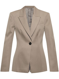 single-breasted blazer Highlights - Taupe - Front button fastening - Jetted chest pocket - Central rear vent - Peak lapels Made in Italy Composition Outer: Virgin Wool 100% Lining: Viscose 100% SIZE & FIT Measurement SLEEVE LENGTH 25 in(63.5 cm) LENGTH 25.98 in(66 cm) WAIST 29.01 in(73.7 cm) BUST 32 in(81.3 cm)