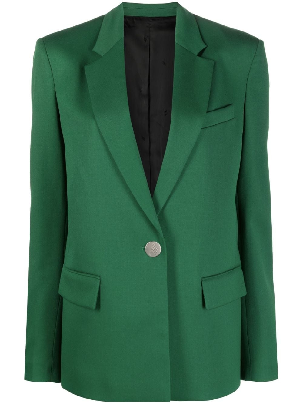 single-breasted blazer This single-breasted blazer is a nod to The Attico's refined side. Cut to a tailored fit, this emerald green style is enhanced by classic notched lapels and flap pockets. Highlights - Emerald green - Virgin wool blend - Notched collar - Front button fastening - Long sleeves - Chest welt pocket - Two front flap pockets Made in Italy Composition Outer: Virgin Wool 98%, Spandex/Elastane 2% Lining: Cupro 100% SIZE & FIT Model measurements Height 5 ft 9 in(1.75 m) Bust/Chest 31.88 in(81 cm) Hips 33.85 in(86 cm) Waist 24.01 in(61 cm) FittingInformation Designed for a boxy fit, intended for a loose fit throughout The internal shoulder pads offer a structured shape This piece fits true to size – take your usual size Measurement SLEEVE LENGTH 25.51 in(64.8 cm) LENGTH 27 in(68.6 cm) WAIST 35.98 in(91.4 cm) BUST 35.98 in(91.4 cm) Washing instructions Dry Clean Only