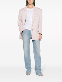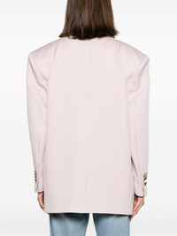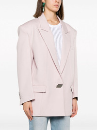 single-breasted blazer The Attico's affinity for sharp tailoring is captured in the bold construction of this pale-pink blazer. It's cut with wool to an oversized silhouette accentuated by peak lapels and padded shoulders and finished with polished silver-tone metal branded hardware. Highlights - Light pink - Virgin wool blend - Peak lapels - Front button fastening - Long sleeves - Chest welt pocket - Two front flap pockets - Full lining - Straight hem Made in Italy Composition Outer: Polyamide 56%, Virgin Wool 44% Lining: Viscose 100% SIZE & FIT Model measurements Height 5 ft 10 in(1.77 m) Bust/Chest 31.1 in(79 cm) Hips 35.03 in(89 cm) Waist 23.62 in(60 cm) FittingInformation Designed for an oversized fit, offering additional room throughout The internal shoulder pads offer a structured shape Made from a midweight non-stretch fabric This piece fits true to size – take your usual size Washing instructions Dry Clean Only