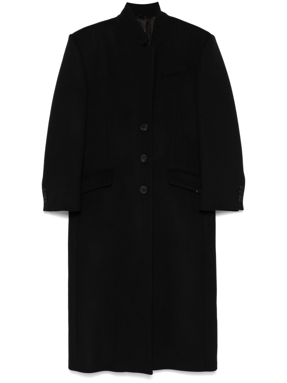 single-breasted coat Highlights - Black - Chest welt pocket - Two front flap pockets - Central rear vent - Buttoned-cuff sleeves Made in Italy Composition Outer: Virgin Wool 75%, Polyamide 25% Lining: Viscose 100% SIZE & FIT Model measurements Height 5 ft 10 in(1.77 m) Bust/Chest 32.28 in(82 cm) Hips 35.03 in(89 cm) Waist 25.19 in(64 cm) FittingInformation Designed for an oversized fit, offering additional room throughout The internal shoulder pads offer a structured shape Made from a midweight non-stretch fabric