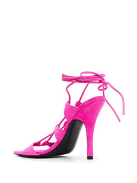 strap-detail open-toe sandals The brand whose name derives from the Italian word for 'penthouse', The Attico brings together statement design with understated detailing on this pair of sandals, through a bright pink colourway and strap detailing. Made in Italy Composition Suede 100% SIZE & FIT Measurement HEEL 4.13 in(10.5 cm)
