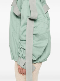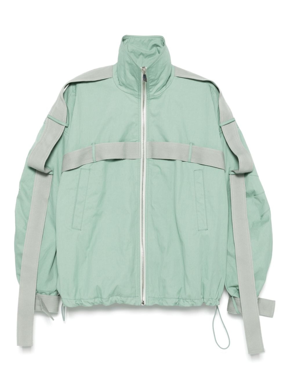 strap-detailing bomber jacket Highlights - Sage green - Front zip fastening - Belted cuffs - Two front welt pockets - Toggle fastening Made in Italy Composition Outer: Cotton 70%, Polyamide 30% Lining: Cotton 100% SIZE & FIT Model measurements Height 5 ft 10 in(1.78 m) Bust/Chest 33.46 in(85 cm) Hips 36.22 in(92 cm) Waist 23.22 in(59 cm) FittingInformation Designed for an oversized fit, offering additional room throughout Constructed with additional length on the sleeve Made from a midweight non-stretch fabric Washing instructions Dry Clean Only