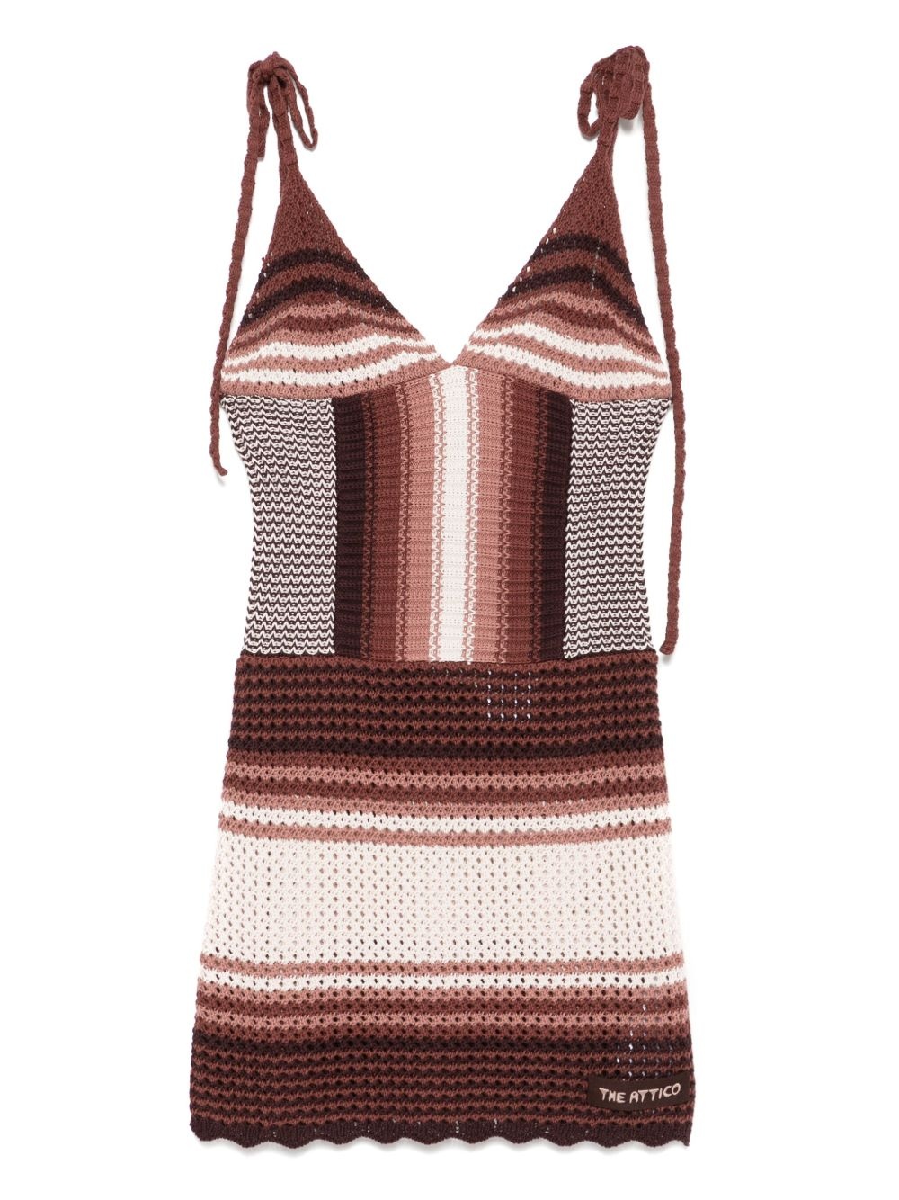striped mini dress Highlights - Chocolate brown - Adjustable shoulder straps - V-neck - Sleeveless - Scallop hem Made in Italy Composition Cotton 100% SIZE & FIT Model measurements Height 5 ft 10 in(1.79 m) Bust/Chest 35.43 in(90 cm) Hips 35.03 in(89 cm) Waist 25.19 in(64 cm) FittingInformation Designed for a close fit throughout Slightly short in length; consider your own measurements Made with a lightweight knit, this piece offers some stretch Washing instructions Dry Clean Only