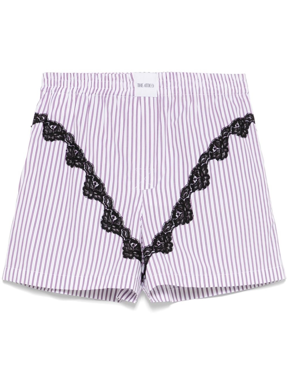 striped poplin shorts Highlights - White - Elasticated waistband - Two side slit pockets - Floral lace applique Made in Italy Composition Cotton 100%