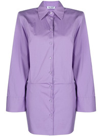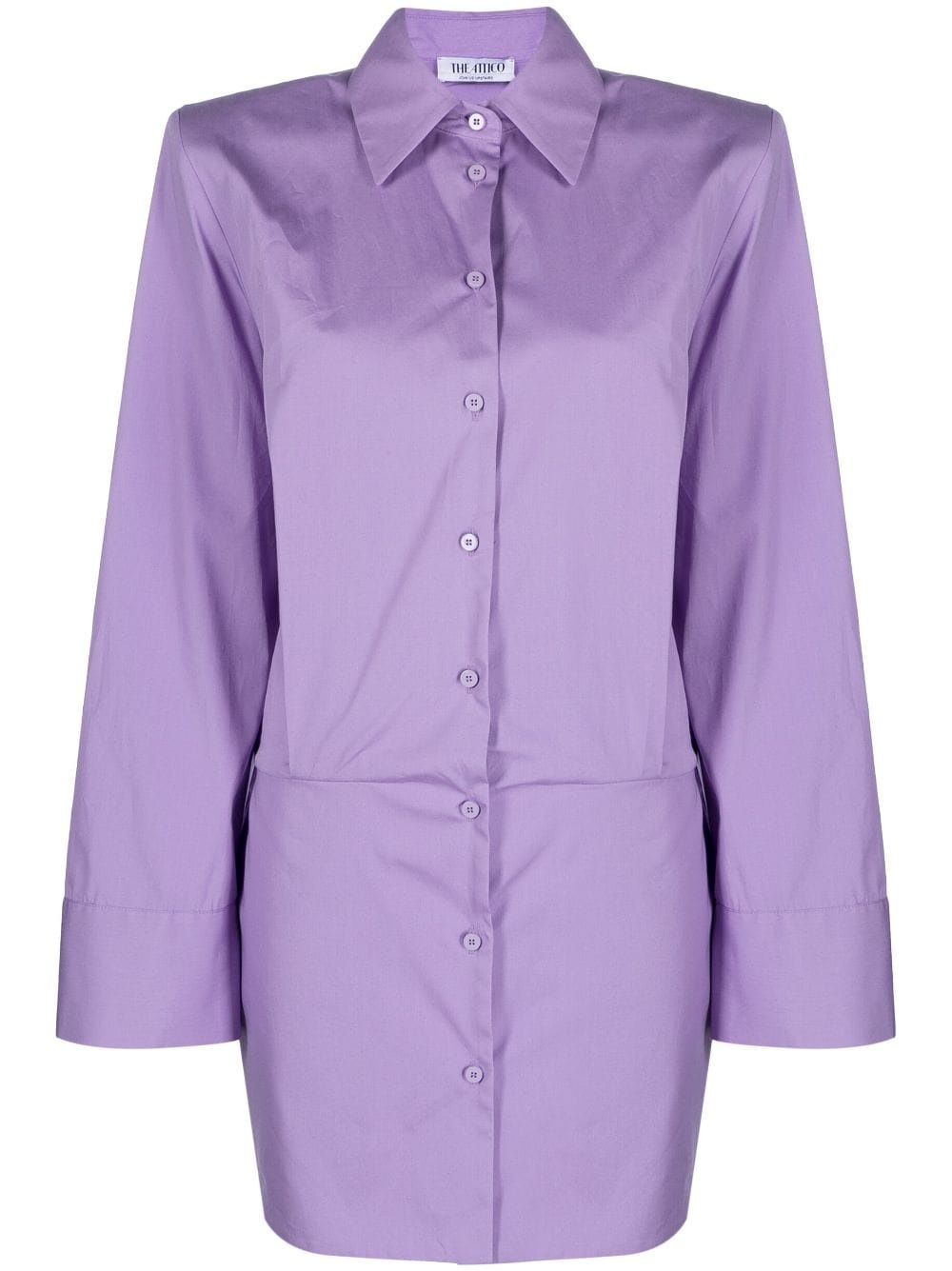 structured cotton shirt dress The Attico’s ability to blend minimalist and maximalist sensibilities is evident in the design of this shirt dress. Crafted from cotton, the piece arrives in a lavender purple hue and flaunts padded shoulders for a structured silhouette. Highlights - Lavender purple - Cotton - Front button fastening - Classic collar - Shoulder pads - Long sleeves - Straight hem - Thigh-length Made in Italy Composition Cotton 100% SIZE & FIT Model measurements Height 5 ft 9 in(1.75 m) Bust/Chest 31.49 in(80 cm) Hips 34.05 in(86.5 cm) Waist 24.21 in(61.5 cm) Measurement HIPS 35.43 in(90 cm) LENGTH 33.07 in(84 cm) WAIST 29.13 in(74 cm) FittingInformation Designed for a loose fit at the chest and waist with a close fit at the hips The internal shoulder pads offer a structured shape Made from a midweight non-stretch fabric This piece fits true to size – take your usual size