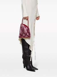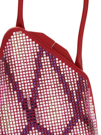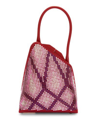 Sunset satin tote bag Highlights - Crimson/multicolour - Satin weave - Geometric pattern - Crystal embellishment - Gradient effect - Asymmetric body - Concealed magnetic fastening - Single rolled top handle - Main compartment - Internal slip pocket - Debossed internal logo Imported Composition Outer: Polyester 100% SIZE & FIT Measurement DEPTH 2.36 in(6 cm) HEIGHT 7.28 in(18.5 cm) WIDTH 8.66 in(22 cm)