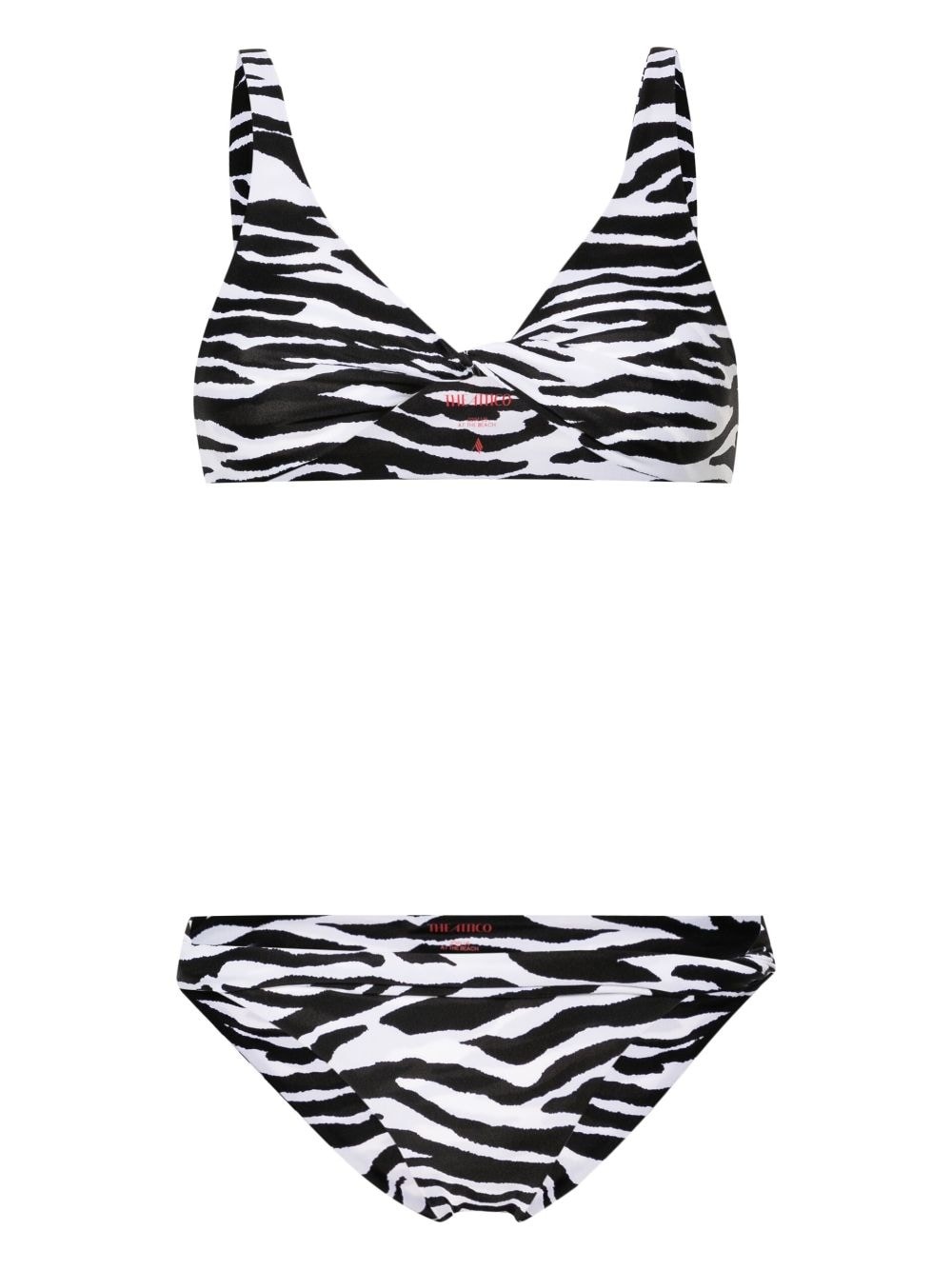 twist-detailing zebra-print bikini Highlights - White/black - Stretch-design - Zebra print - Logo print to the rear - Twist detailing - Slip-on style - Wide shoulder straps - Two separate pieces - Be mindful to try on swimwear over your own garments. Made in Italy Composition Outer: Polyamide 80%, Elastane 20% Lining: Polyamide 80%, Elastane 20%