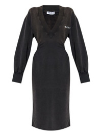 V-neck balloon-sleeve midi dress Highlights - Dark grey - Cotton - V-neckline - Balloon sleeves - Printed logo - Back slit Imported Composition Cotton 100% Washing instructions Read Manufacturer Guidelines