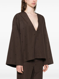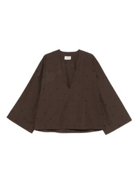 v-neck blouse Highlights - Brown - Long sleeves - Embroidered design - Straight hem Made in Italy Composition Cotton 90%, Polyester 10% SIZE & FIT Model measurements Height 5 ft 10 in(1.79 m) Bust/Chest 35.43 in(90 cm) Hips 35.03 in(89 cm) Waist 25.19 in(64 cm) FittingInformation Designed to be unstructured, offering a loose fit throughout Made from a midweight non-stretch fabric