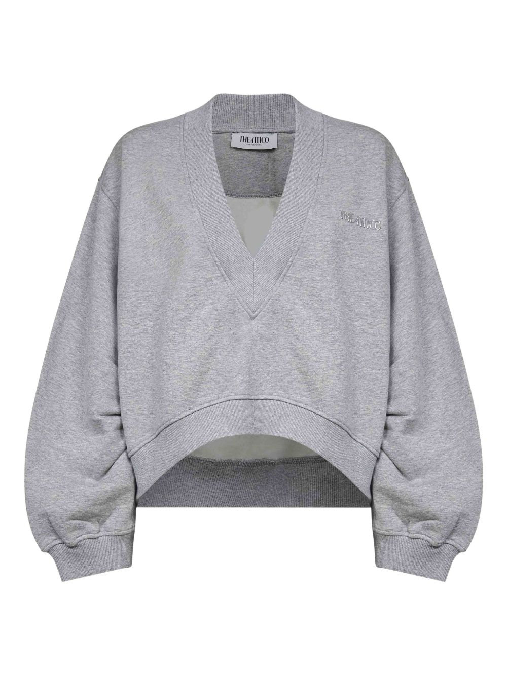 V-neck sweatshirt Highlights - Grey - V-neck - Long sleeves - Dropped shoulders - Gathered detailing - Logo detail - Ribbed cuffs and hem Imported Composition Cotton 100% Washing instructions Read Manufacturer Guidelines