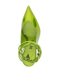Venus holographic-effect 105mm pumps Delivered in a lime green colourway with a high-shine holographic effect, The Attico's Venus pumps are set atop a 105mm high stiletto heel. Designed with a pointed toe, the pair is finished with a tie-fastening ankle strap. Highlights - Lime green - Holographic effect - Patent finish - Pointed toe - Tie-fastening ankle strap - Branded leather insole - High stiletto heel Made in Italy Composition Other fibres 100% SIZE & FIT Measurement HEEL 5.11 in(13 cm)